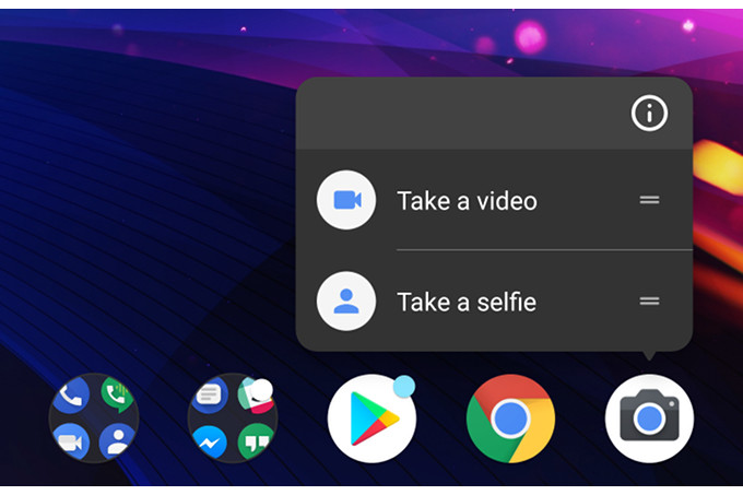 В лаунчерах и оболочках, поддерживающих вызов меню по нажатию и удерживанию значка, появились опции, позволяющие сэкономить время и быстро запустить запись видео или сразу же запустить фронтальную камеру и снять селфи.