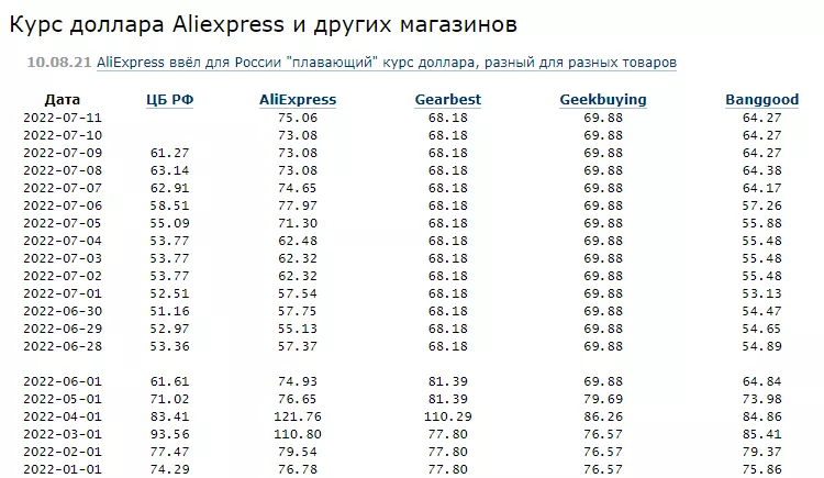 Курс доллара на AliExpress отличается от официально установленного Центробанком и используемого российскими банками. А недавно эта площадка скрыла от россиян возможность видеть цены в долларах, чем усложнила подсчёт внутреннего курса. Это вполне понятно, ведь если покупатель видит только рублёвую цену, ему сложно понять, завышена ли она или товар можно будет приобрести дешевле, когда курс на AliExpress стабилизируется и приблизится к официальному.
