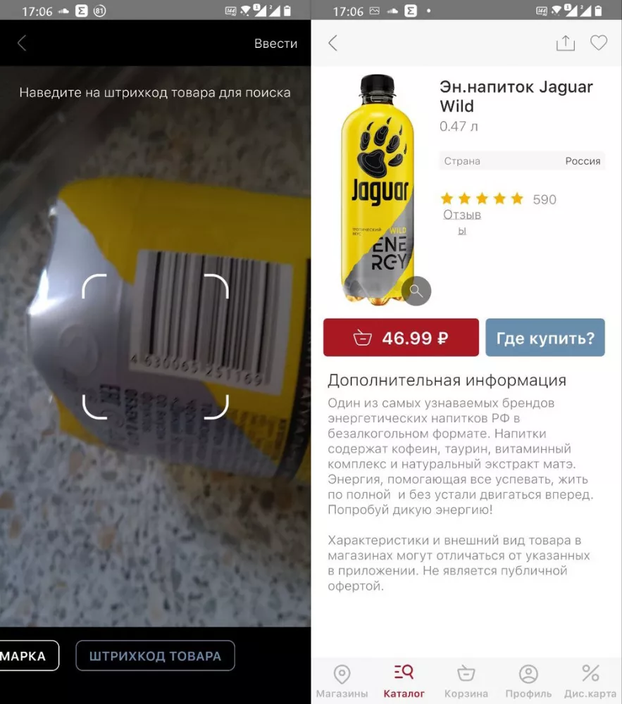 Некоторые магазины придумали решение — можно сканировать шрихкоды от товаров через специальные терминалы, но есть более изящный и технологичный способ — воспользоваться собственным смартфоном. В приложениях «Магнита», «Ленты» и «К&Б» встроен сканер товаров: вы сканируете штрих-код товара, который взяли на полке, а приложение показывает вам, сколько стоит этот товар. Возможно, такой же сканер есть и в приложениях других магазинов.