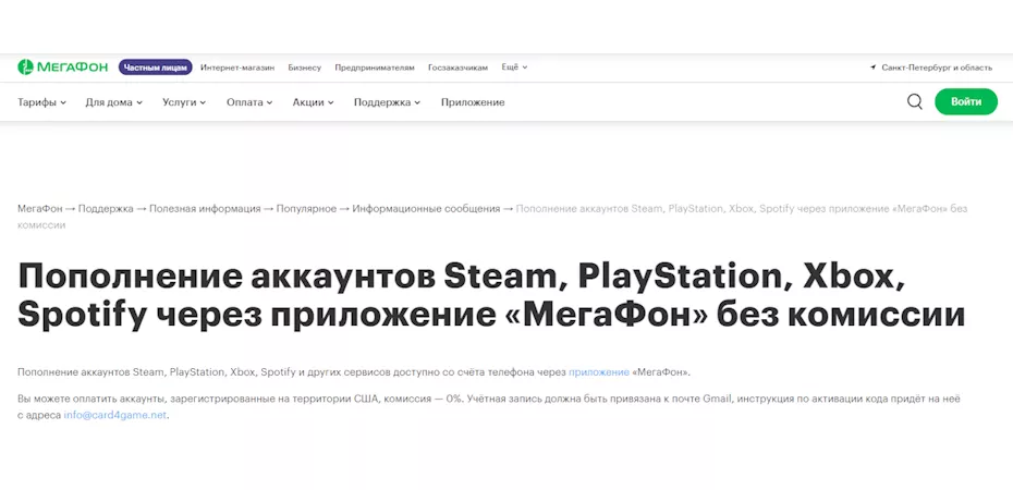 Все крупные сотовые операторы предлагают услуги пополнения счёта в играх и игровых сервисах, включая Steam. Итоговый размер комиссии зависит от того, куда вы переводите деньги, и платы за конвертацию валюты, он может составлять до четверти суммы зачисления.