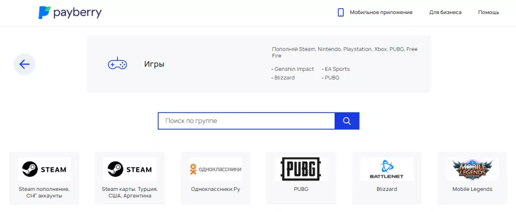 Payberry изначально запускался для жителей Крыма, желавших обходить санкционные ограничения, а теперь в новых реалиях ориентирован на всю Россию. Он позволяет пополнять Steam и аккаунты в других сервисах с карт «Мир» и через СБП. Комиссия 10%, дополнительные потери возникают при конвертации валюты.