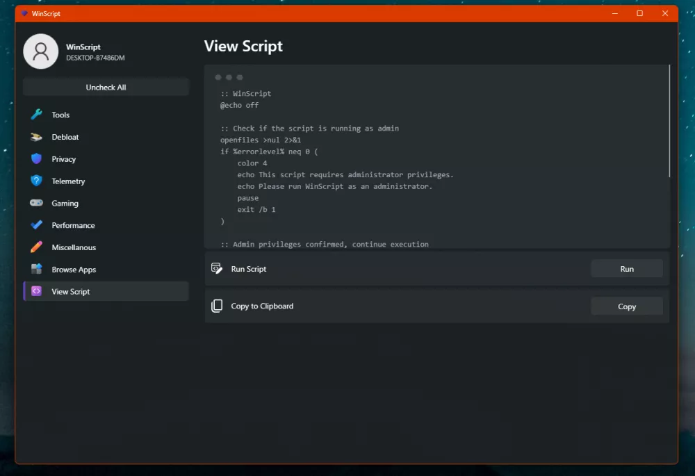 Энтузиасты-разработчики создали утилиту WinScript. С её помощью можно очень тонко настроить Windows под себя, причём все действия по сути выполняются встроенными инструментами операционной системы, с помощью скрипта, который можно посмотреть и даже перенести на другие компьютеры.