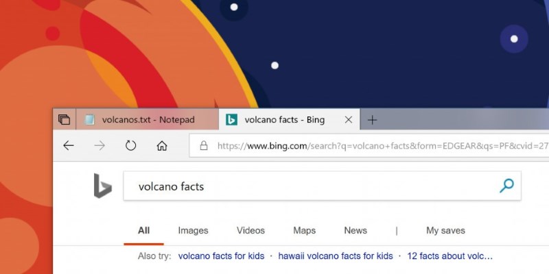- Просмотр последних вкладок, открытых в Microsoft Edge по нажатию Alt+Tab.