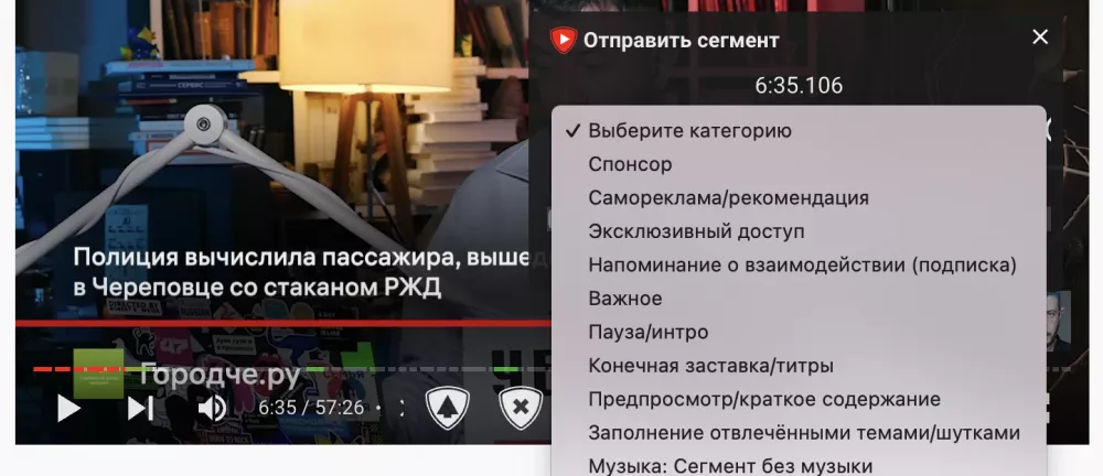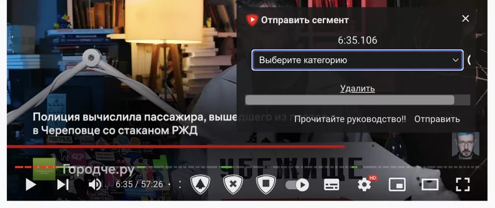 Напомню SponsorBlock позволяет всем пользователям отмечать нативные интеграции в роликах. Не забывайте это делать там, где еще нет отметок — другие пользователи расширения будут вам благодарны. Для этого необязательно лезть в настройки SponsorBlock. В меню управления воспроизведением появляются удобные кнопки для быстрой пометки «вшитой» рекламы. Теперь можно не тратить время на просмотр навязчивой рекламы.