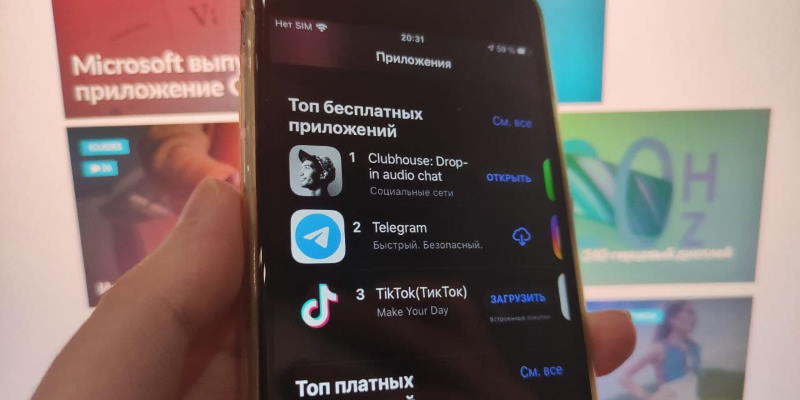 Приложение Clubhouse выбилось на первое место по скачиваниям в App Store в нескольких странах мира, в том числе в России. Оно обогнало Telegram и TikTok, которые занимают второе и третье место.