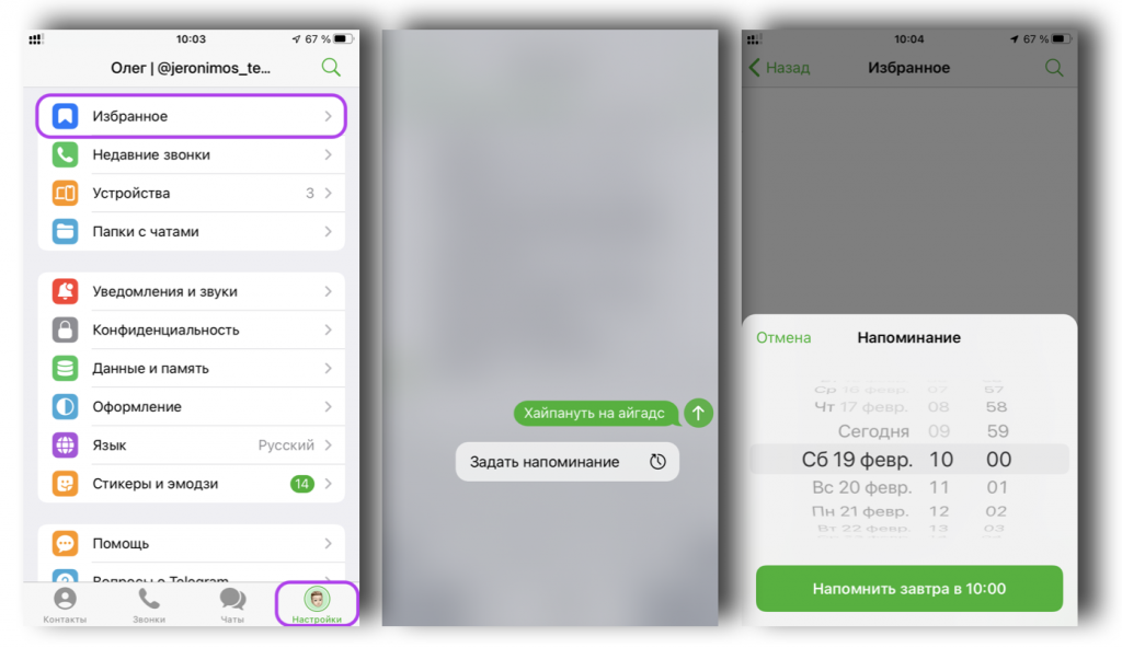 Одной из фишек, делающих Telegram очень удобным, является возможность устанавливать напоминания самому себе. Да, благодаря ему можно реже использовать календарь или приложения для напоминаний.