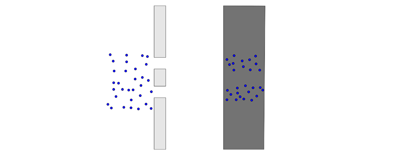 Тот факт, что природа ведет себя таким образом, неоднократно доказывался в лаборатории — например, в знаменитом эксперименте с двумя щелями. Допустим, что вы пускаете электроны через две щели и смотрите, какая картинка будет на экране за ними. Думаю, многие согласятся с тем, что должно получиться как-то так: