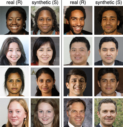 Последним 223 участникам было предложено оценить подлинность лиц от одного до семи, по возрастающей. Средняя оценка ненастоящих лиц составила 7,7% и была более достоверной, чем оценка реальных лиц.