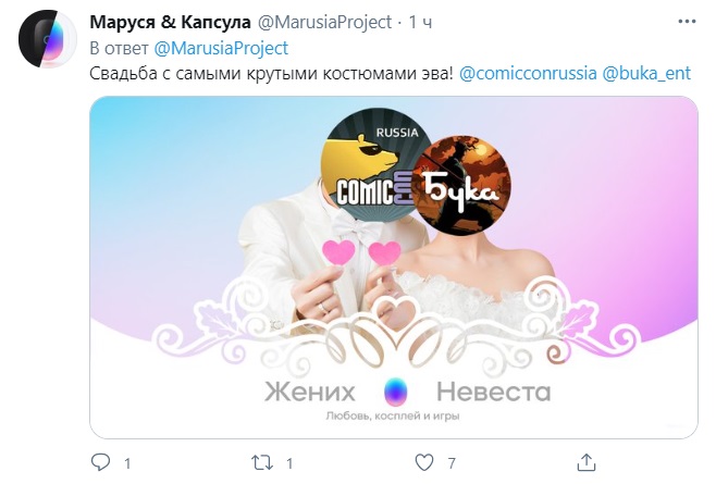 Таким образом в твиттере сыграли свадьбу как обычные пользователи, так и бренды, обычно конкурирующие друг с другом (например, «Сбер» и «Тинькофф» или «Билайн» и МТС). Посты с предложением пожениться или развестись с помощью «Маруси» нужно публиковать с хэштэгом #большаятвиттерскаясвадьба.