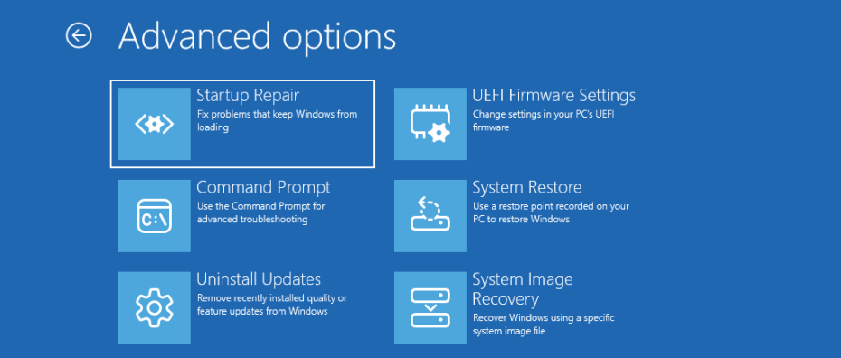 Дизайнеры Microsoft также решили избавиться от дизайна времён Window 8 и Windows RT на экране восстановления операционной системы Windows Recovery Environment. Полностью переделывать дизайн этого экрана они пока не стали, а лишь обновили иконки, заменив старые более современными.