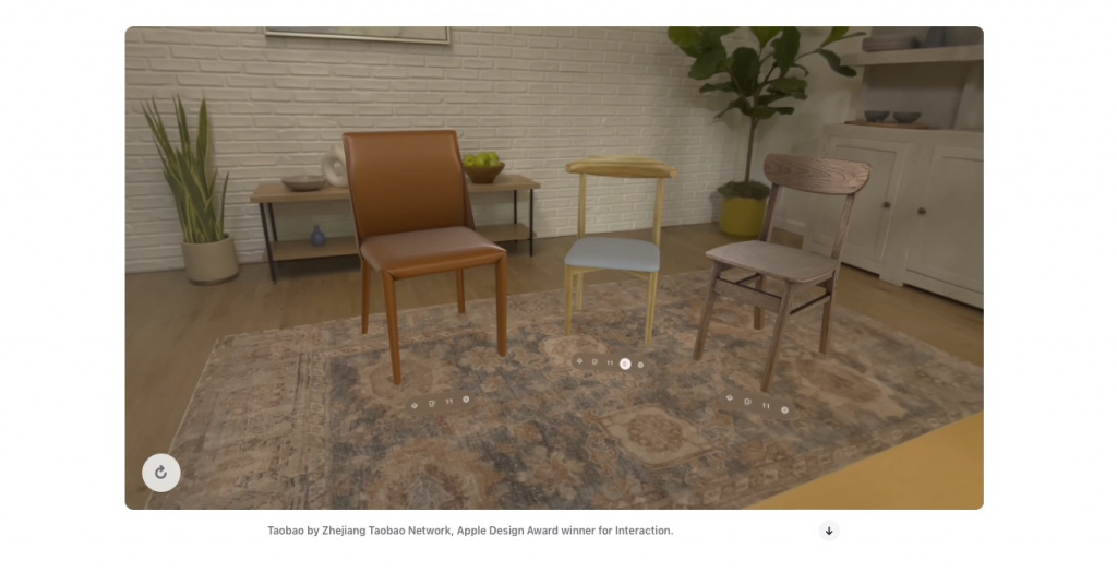 Taobao — китайский макретплейс, который получил награду только благодаря версии для Apple Vision Pro. В ней появились 3D-модели, сопоставимые с реальными аналогами товаров.