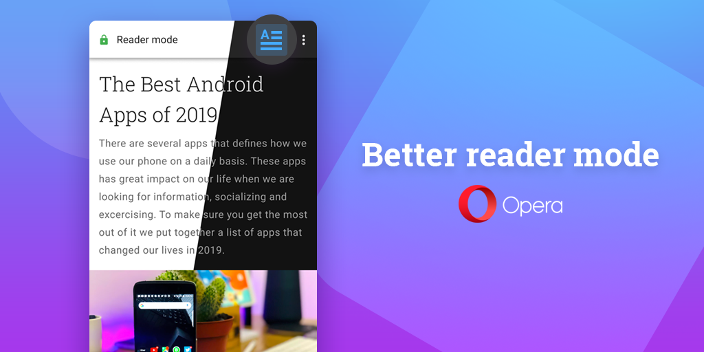 Opera выпустила новую версию своего браузера для Android под номером 56. Апдейт добавляет улучшенный режим чтения: обновленная функция позволяет лучше фокусироваться на читаемом контенте на экране мобильного устройства. Теперь, вне зависимости от дизайна сайта, данный режим отобразит ту или иную статью в максимально оптимальном формате, облегчающем ее чтение.