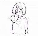 1 — эпидермис, 2 — гладкая мышца, 3 — волосяной фолликул, 4 — дерма.