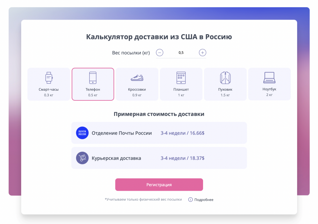 На данный момент стоимость услуг «Почты Global» довольно скромна. Из онлайн-калькулятора следует, что доставка смартфона из США будет стоить около $17, а ноутбука — $36. С учетом того, что цены на том же американском сайте Apple на определенные девайсы кардинально отличаются от цен в России, сэкономить можно довольно существенно. При расчетах не забудьте прибавить к сумме покупки таможенную пошлину