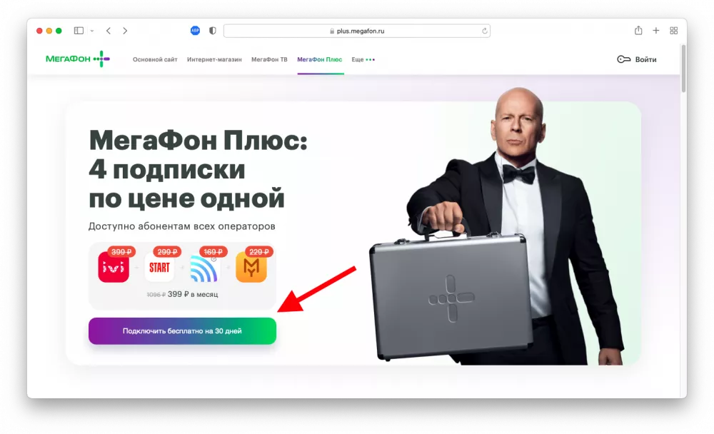 Первые 30 дней после подключения мультиподписка доступна бесплатно. Пробный период доступен только один раз.По завершению бесплатного периода «МегаФон Плюс» будет автоматически продлеваться каждые 30 дней за 399 ₽: если вы абонент МегаФона — то со счета вашего телефона, если другого оператора — то со счета банковской карты. Реквизиты карточки можно изменить в любое время. Это можно сделать в личном кабинете «МегаФон Плюс». По стоимости получается довольно выгодное предложение в сравнении с оплатой сервисов по отдельности.