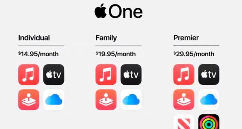 Компания Apple представила подписку Apple One. Она объединяет в себе подписки на различные сервисы компании. Будет доступно три версии подписки: индивидуальная, семейная и премиум. Они отличаются ценой и набором сервисов.