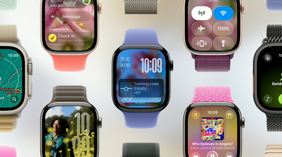 watchOS 26 предлагает более персонализированные возможности для поддержания активности, здоровья и связи. Новая программная концепция Liquid Glass делает использование Apple Watch еще приятнее. Знаковым новшеством стал «Тренер» (Workout Buddy) — первый в своем роде фитнес-опыт с Apple Intelligence. Кроме того, Smart Stack («Умная стопка») и приложение «Сообщения» стали интеллектуальнее. Система предоставляет обновленный визуальный стиль и расширенные интеллектуальные функции для более индивидуальной работы, помогая пользователям оставаться активными, здоровыми и на связи. Liquid Glass придает выразительность таким элементам, как Smart Stack, Пункт управления, циферблат «Фото» и навигации внутри приложений, сохраняя при этом привычность интерфейса watchOS.