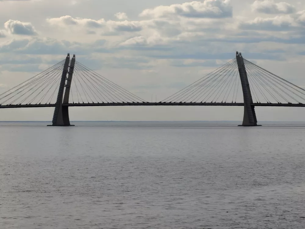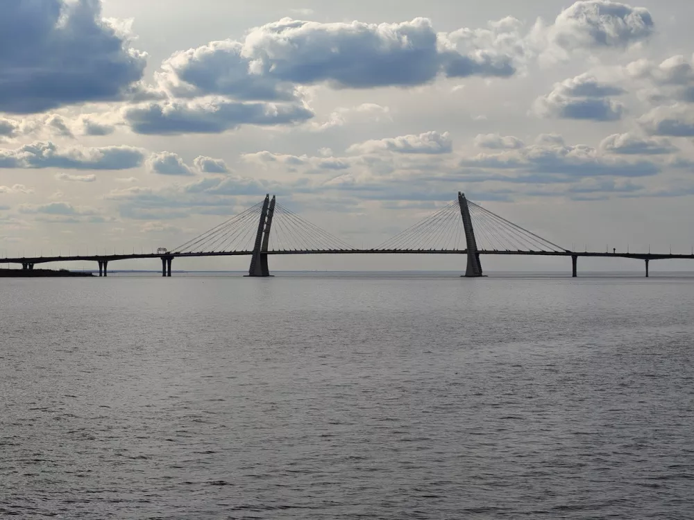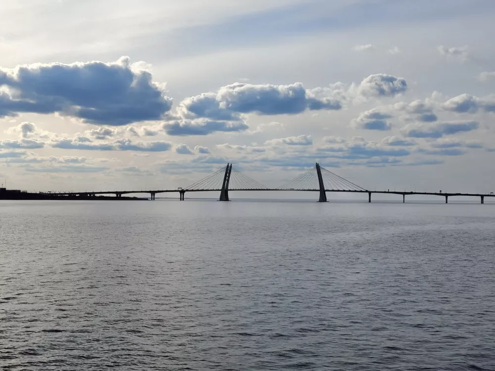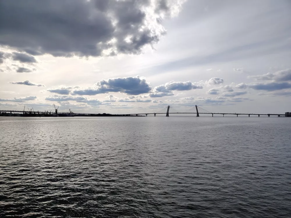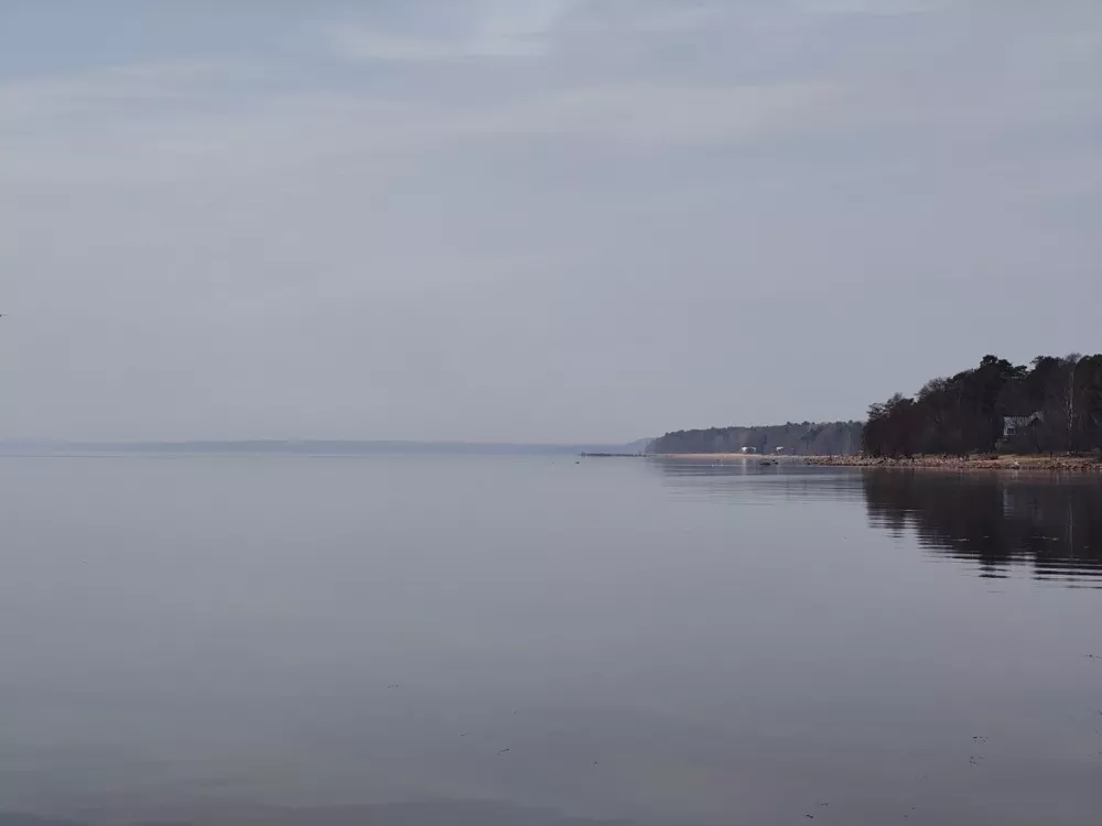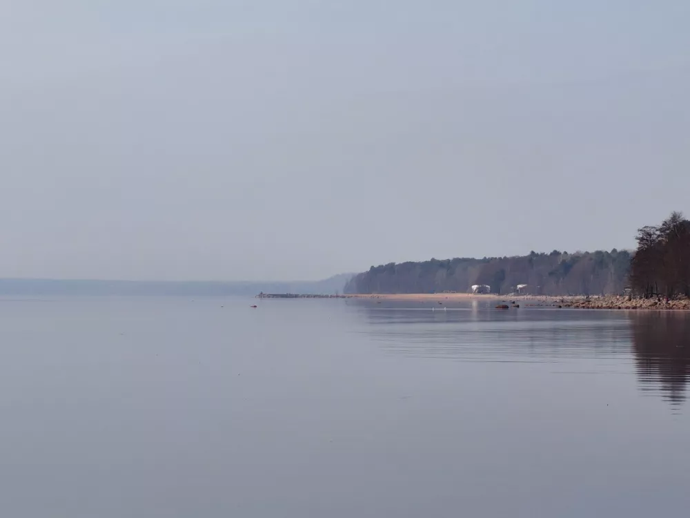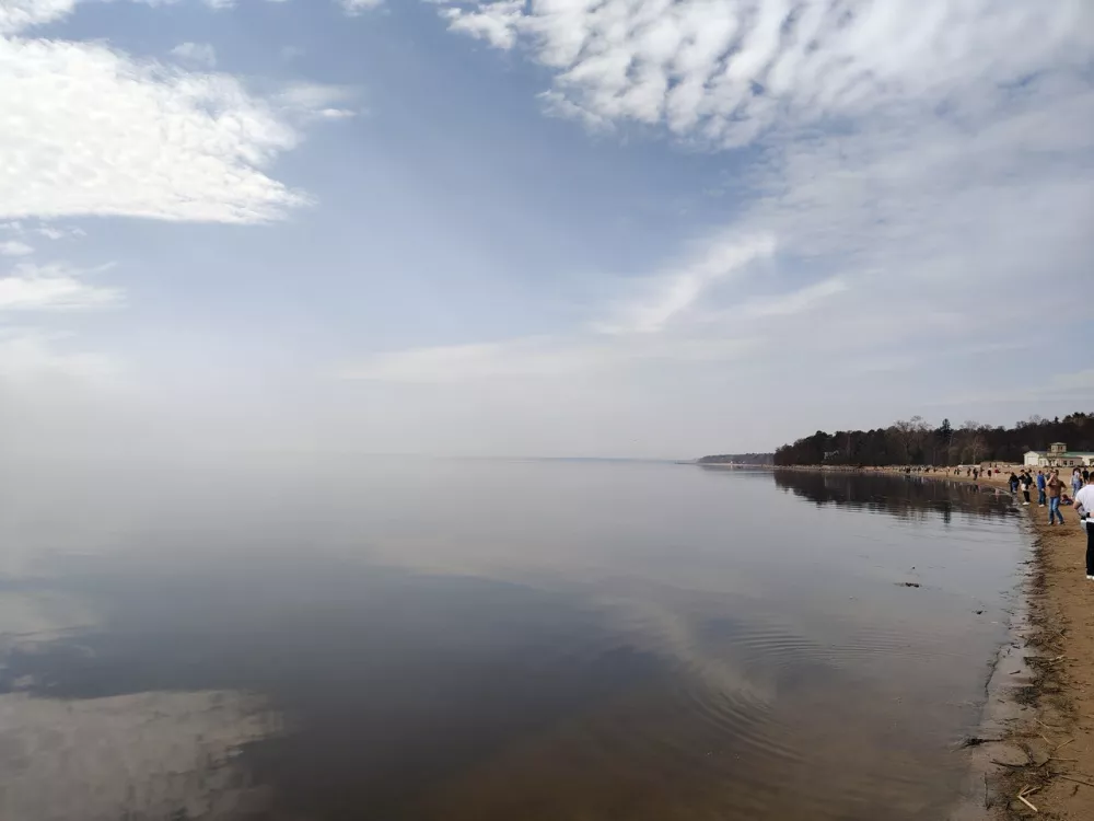 Над заливом была интересная дымка — вода будто слилась с небом. Линию горизонта сложно различить.