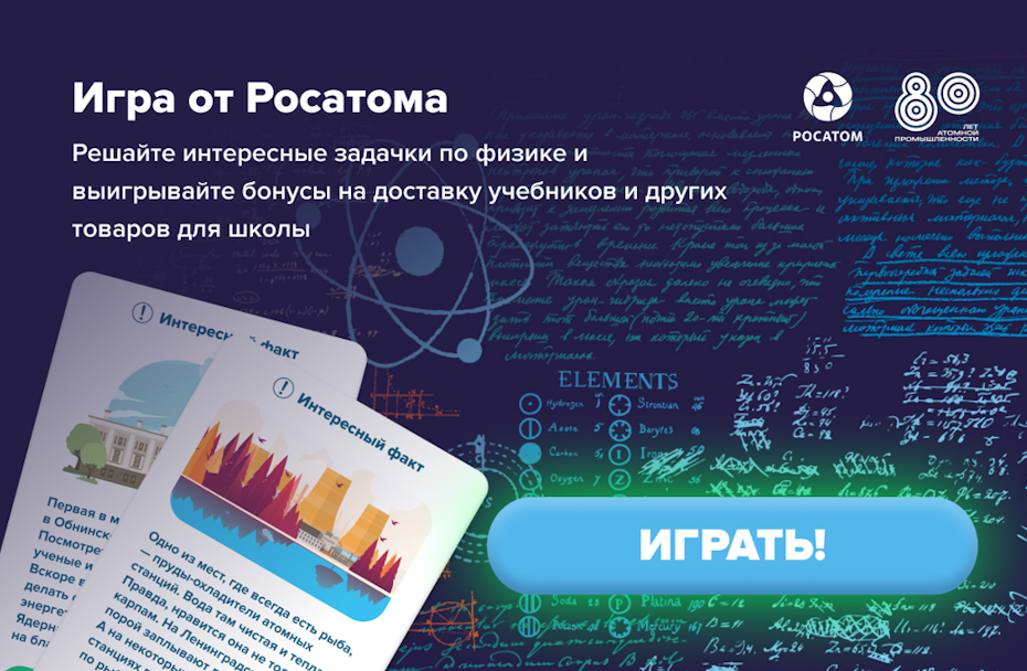 В год 80-летия атомной промышленности «Росатом» и «Авито» разработали цифровой проект для вовлечения молодых людей в науку. Школьники и студенты могут проверить знания законов физики в интерактивном формате, получить бонусы на доставку учебников и познакомиться с возможностями карьерного развития в атомной отрасли. Задача инструмента — облегчить старт карьеры молодежи в науке.