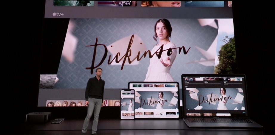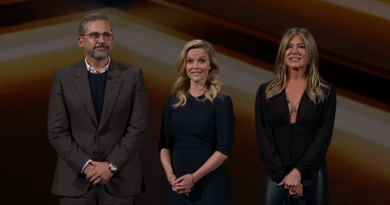Анонс Apple TV+ провёл Стивен Спилберг: Дженнифер Энистон, Риз Уизерспун и Стив Карелл представили комедийный сериал «Утреннее шоу»: Кумейла Нанджиани снимает для Apple сериал об эмигрантах, приехавших в США и добившихся успеха. Это комедийный альманах, основанный на реальных событиях. Джей Джей Абрамс снимает драматический с певицей Сарой Бареллис. С Apple будет сотрудничать Опра Уинфри, безумно популярная в США ведущая ток-шоу. Сейчас она работат над двумя документальными фильмами: один о сексуальном угнетении женщин, второй — о людях с психическими заболеваниями.