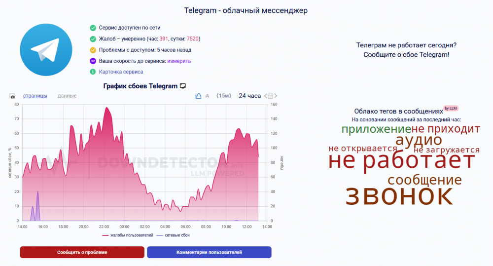 Согласно жалобам на Downdetector, отправка и прием сообщений сбоят, невозможно совершать аудио- и видеозвонки. Больше всего на мессенджеры жалуются в Москве, Санкт-Петербурге, Карелии и Магадане.
