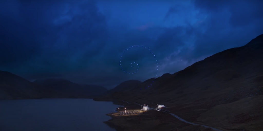 Жителей Эдинбурга поздравили с наступающим Новым Годом необычным образом — с помощью роя дронов, который выполнял в небе различные фигуры.