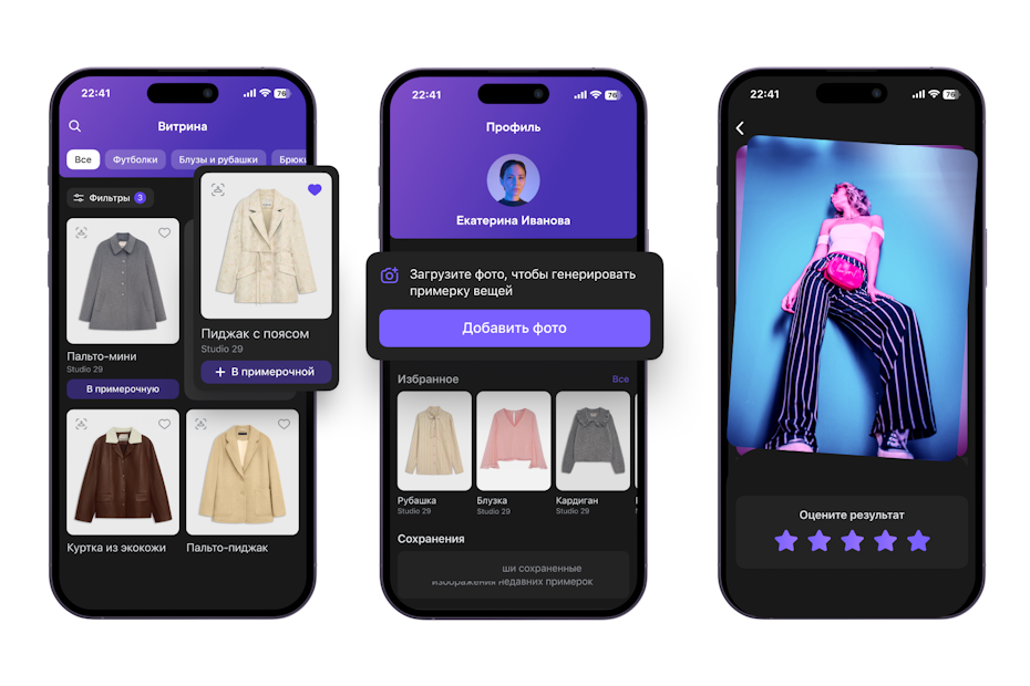 Создатели контента и стилисты, благодаря инструментам виртуальной примерочной, получают дополнительную бесплатную площадку для создания луков. Мини-приложение дает возможность удаленно подобрать готовые образы для клиентов, скачать результаты генерации в виде фотографий и сделать публикации в любом формате. Пользователи мини-приложения могут добавлять любое количество вещей в избранное, сохранять готовые образы и просматривать их в будущем, делиться результатами примерки в историях «ВКонтакте» и оценивать генерации по пятибалльной шкале. Если один или несколько товаров в digital-примерочной понравятся, пользователь в один клик перейдет в диалоговое окно с представителями сообщества бренда и сможет оперативно оформить заказ.