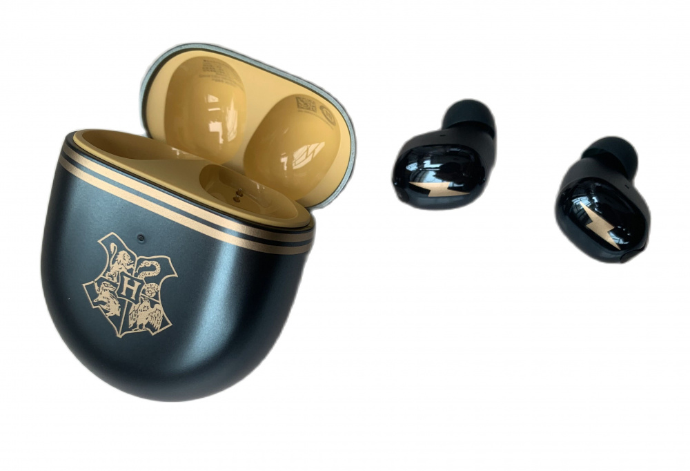 Беспроводные наушники и зарядный кейс стилизованы под вселенную Гарри Поттера и идут в комплекте с защитным чехлом из кожи.