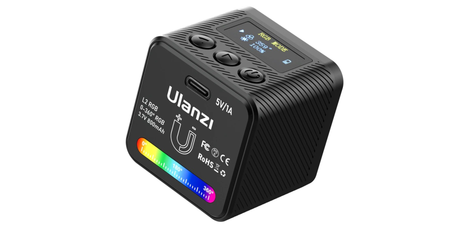 Светильник обладает аккумулятором, который заряжается через USB Type-C, заряда хватает на несколько часов работы в зависимости от яркости освещения. На экране отображаются настройки, а на корпусе есть сенсорная панель для изменения цвета. Благодаря встроенному в корпус магниту, светильник можно прикрепить к металлической поверхности. Также предусмотрен стандартный резьбовой крепёж на штатив.