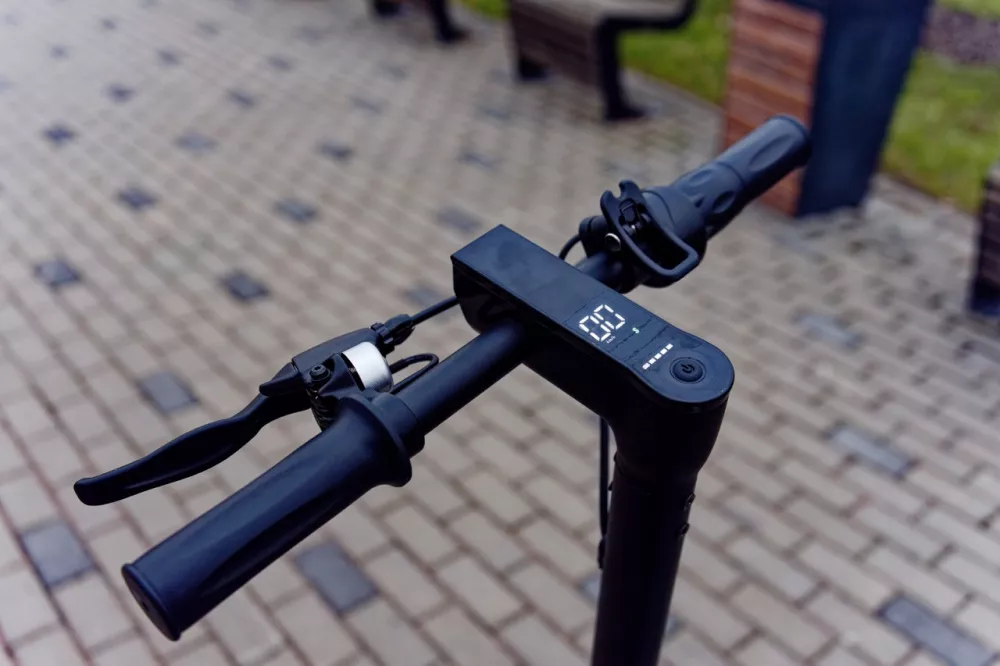 Посередине руля разместился бортовой компьютер с дисплеем и кнопкой, которая используется для включения и отключения, а также переключения режимы езды. На дисплее отображается только полезная информация — скорость, выбранный режим езды, уровень зарядки и индикатор подсветки.