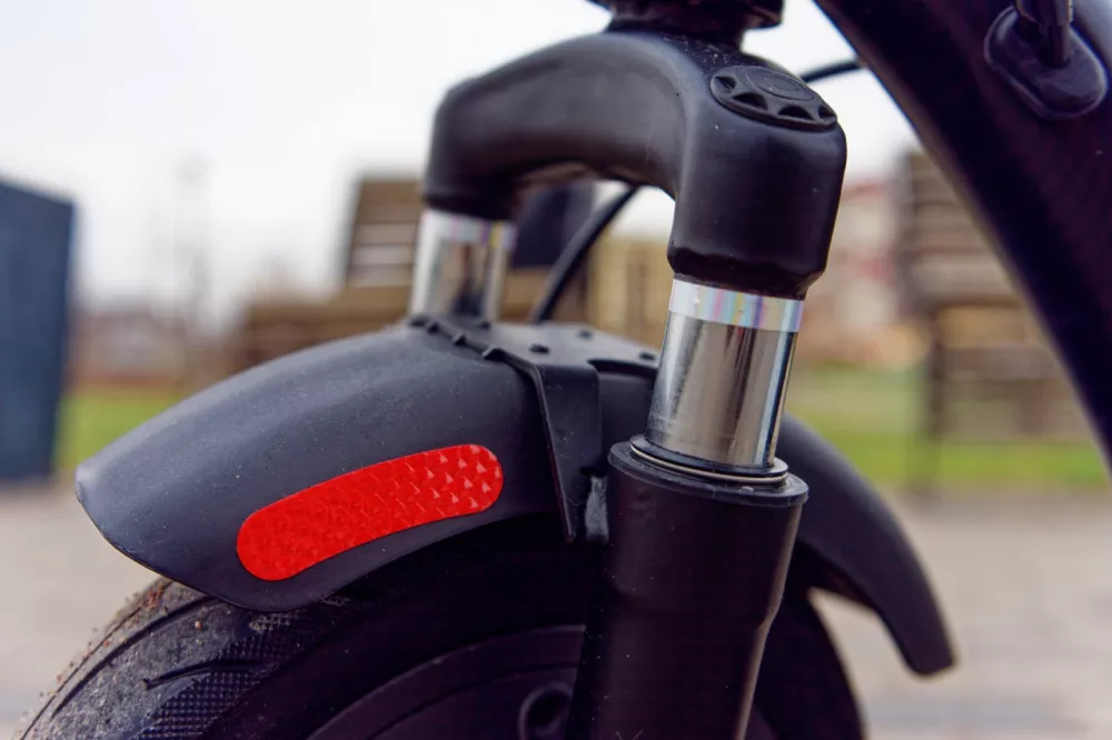 На переднем колесе имеется довольно мощный двойной амортизатор. Он довольно хорошо смягчает поездки. Под декой слева есть парковочная подножка. У неё приятный упругий складной механизм, а убирается она западлицо платформы для ног. Таким образом подножка не снижает дорожный просвет, который составляет 80 мм. Для поездок в темное время суток у Acer ES Series 5 имеется передняя фара и задний габарит, он также используется в качестве стоп-сигнала. Корпус Acer ES Series 5 получил степень защиты IPX4 — это означает, что на нем можно перемещаться в плохую погоду. Самокат не боится дождя и брызг от луж. В целом конструкция очень добротная, все элементы хорошо друг к другу подогнаны.