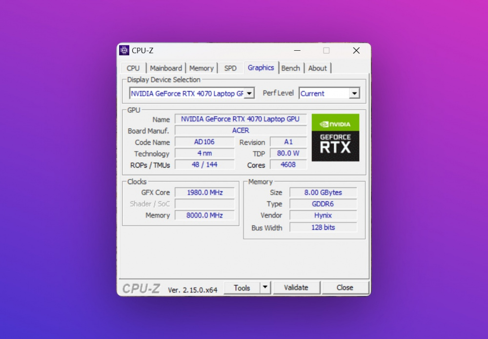 Работу системы охлаждения можно регулировать в утилите PredatorSense. Для стресс-тестов мы выбрали режим Turbo. В таком сценарии под нагрузкой охлаждение становится ощутимо слышным. Для повседневного сценария рекомендуем использовать «Сбалансированный» режим. Тогда работа системы практически не слышна.