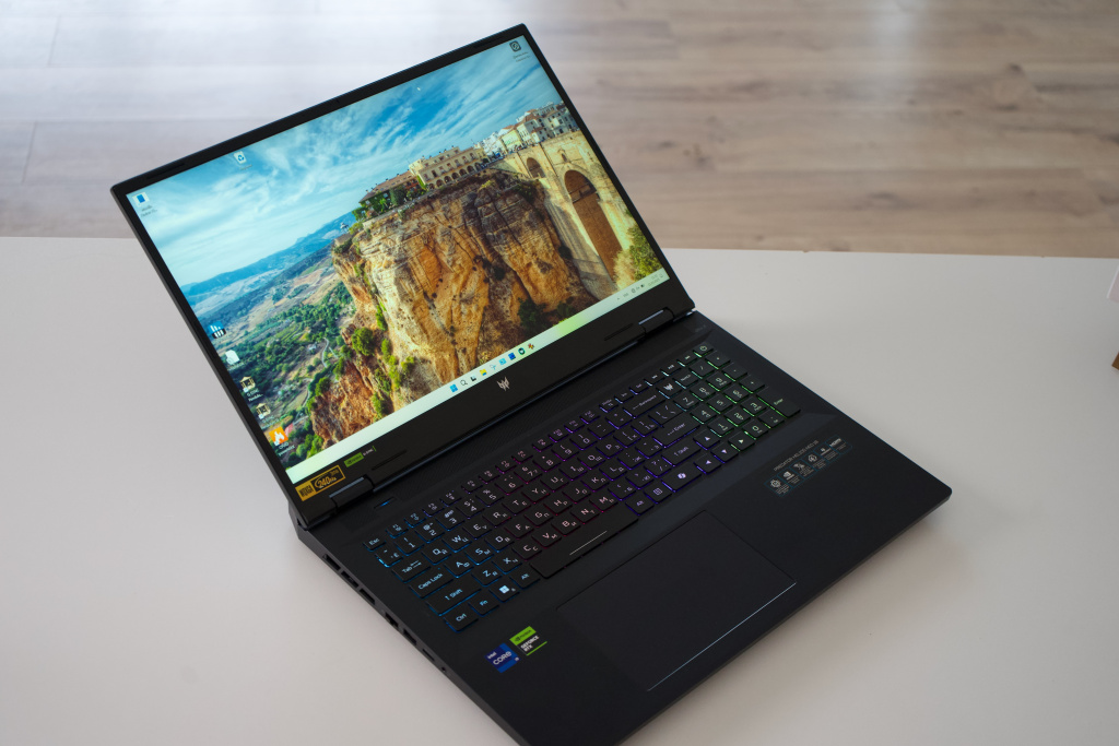 Вторая конструктивная особенность Acer Predator Helios Neo 18 — возможность апгрейда памяти. Пользователь при необходимости может заменить оперативку (два слота SO-DIMM DDR5-5600) и SSD-накопитель (два слота PCIe 4.0). Однако наша тестовая конфигурация вряд ли потребует этого в ближайшее время после приобретения, но об этом подробнее в разделе о производительности.