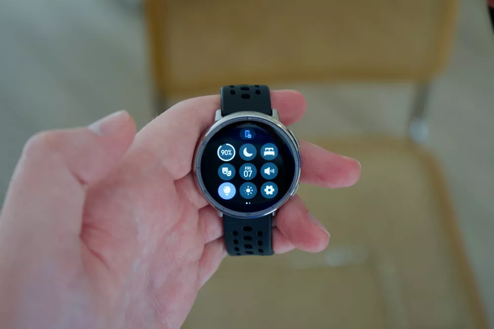 Диагональ AMOLED-дисплея с разрешением 466 × 466 составляет 1,32 дюйма. Защищает его 2.5D закаленное стекло с олеофобным покрытием.