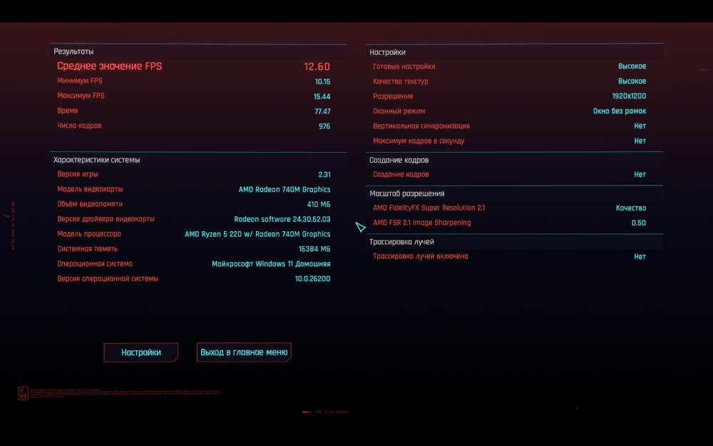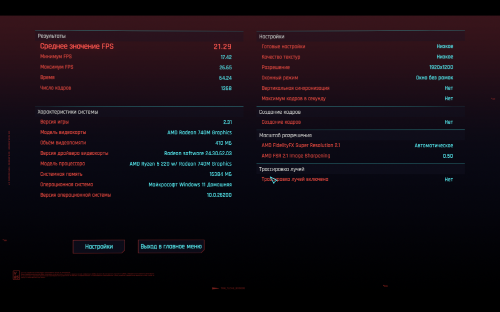 Geekbench (тест производительности): Графические тесты 3DMark, а также накопитель и процессор: Комплексный тест PCMark 10: Также мы решили проверить, как у Asus Vivobook S14 (M3407HA) дела обстоят с играми. На скриншотах ниже вы сможете ознакомиться с результатами встроенного бенчмарка в игру Cyberpunk 2077. Все тесты проводились с режимом работы системы охлаждения «Полная скорость», а в настройках электропитания Windows была установлена «Оптимальная производительность». Стоит отметить, что под максимальными нагрузками вентиляторы работают с умеренной громкостью и не ревут, словно потерпевший динозавр. Замеры инфракрасным термометром по топ-кейсу в пике показали максимум 32 градуса, что говорит о хорошем теплоотводе.