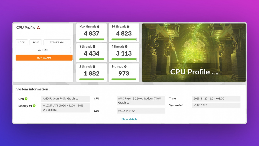 Память — DDR5, часть распаяна, но есть слот расширения до 32 ГБ. SSD — быстрый PCIe 4.0, в тестах даёт хорошие скорости чтения и записи.