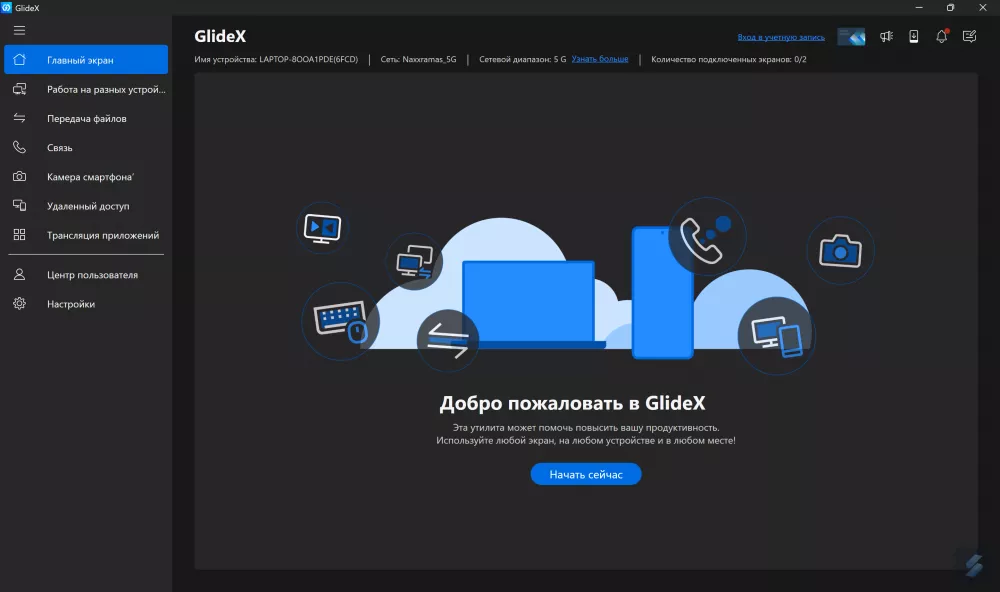 - GlideX — приложение расширяет экранные возможности. С его помощью можно дублировать экран смартфона на дисплее ноутбука, использовать другое устройство в качестве дополнительного экрана и тд.