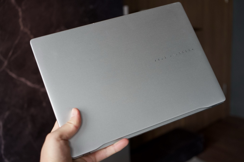 В нашем обзоре ноутбук серебристого цвета. На поверхности крышки аккуратно нанесен логотип бренда с наименованием модельного ряда. Она легко открывается одной рукой.