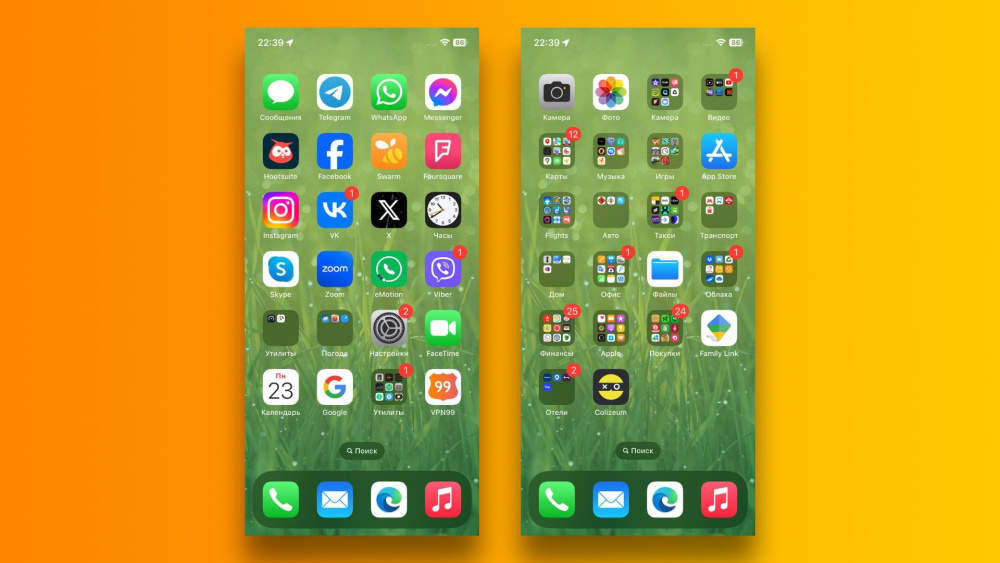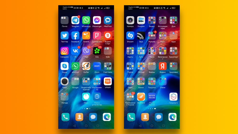 Во всех смартфонах я уже много лет расставляю иконки в определённом порядке. При этом я обязательно хожу с двумя смартфонами одновременно, сейчас основной – это Huawei P60 Pro, а второй – iPhone 12. Почему основной – не айфон? Потому, что слишком много ограничений и слишком скудная функциональность: как минимум бесконтактной оплаты нет, аудиокодеков нет, автономности нет, приложения банятся…
