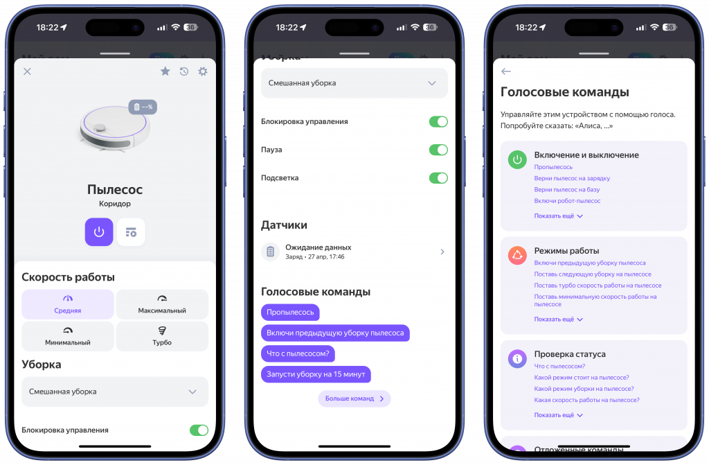 Dreame L10s Pro Ultra Heat поддерживает управления с помощью голосовых ассистентов Siri и Алиса. Последняя настраивается в приложении «Умный дом» от Яндекса. Голосом можно выбирать режимы, запускать и устанавливать уборку.