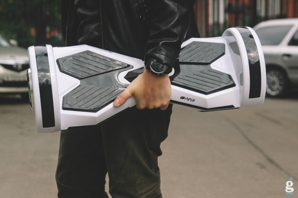 - HIPER ES65 — модель с колесами диаметром 6.5 дюймов, имеющая раму из алюминия и два мощных мотора. Этот гироскутер позволяет передвигаться по городу и преодолевать подъемы до 17 градусов.