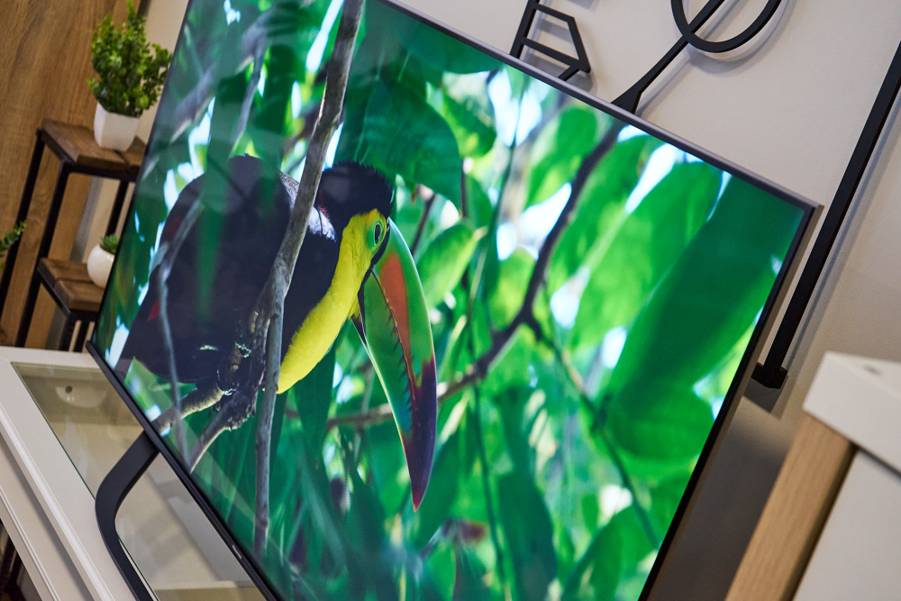 Все основные порты расположились на левой грани, а разъем подключения питания — на правой. На тыльную поверхность производитель решил вывести цифровой аудиовыход, Ethernet и порт USB 2.0. Они дополнительно утоплены в корпус, поэтому проблем с подключением, если телевизор крепится к стене на кронштейн, не возникнет. Что касается набора разъемов, здесь имеются: четыре HDMI (версии 2.0 и 2.1), USB 3.0, мини-композитный разъем, оптический разъем и 3,5 мм джек.