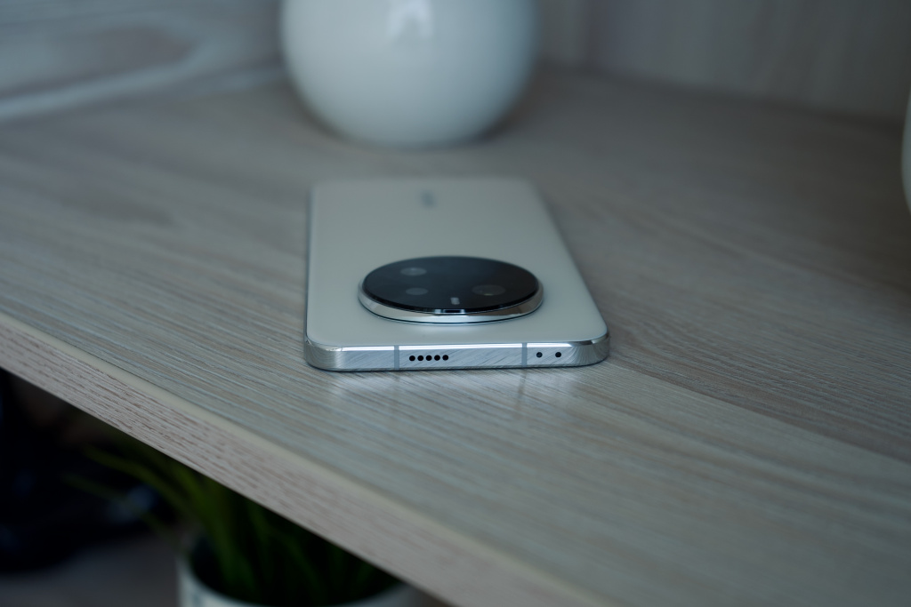 Рамка металлическая серебристого цвета с глянцевой поверхностью. На верхнем торце расположены отверстия дополнительных микрофона и динамиков. Все физические элементы управления расположены на правой грани. С точки зрения удобства использования расположение кнопок показалось оптимальным. На нижнем торце размещены слот для двух СИМ-карт, USB-C, а также отверстия основных микрофонов и динамиков.