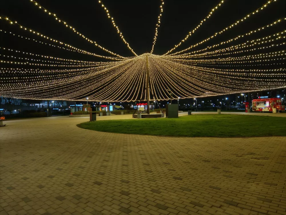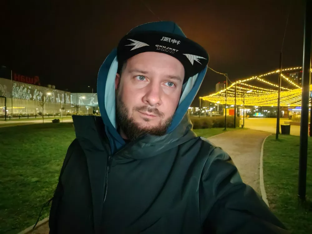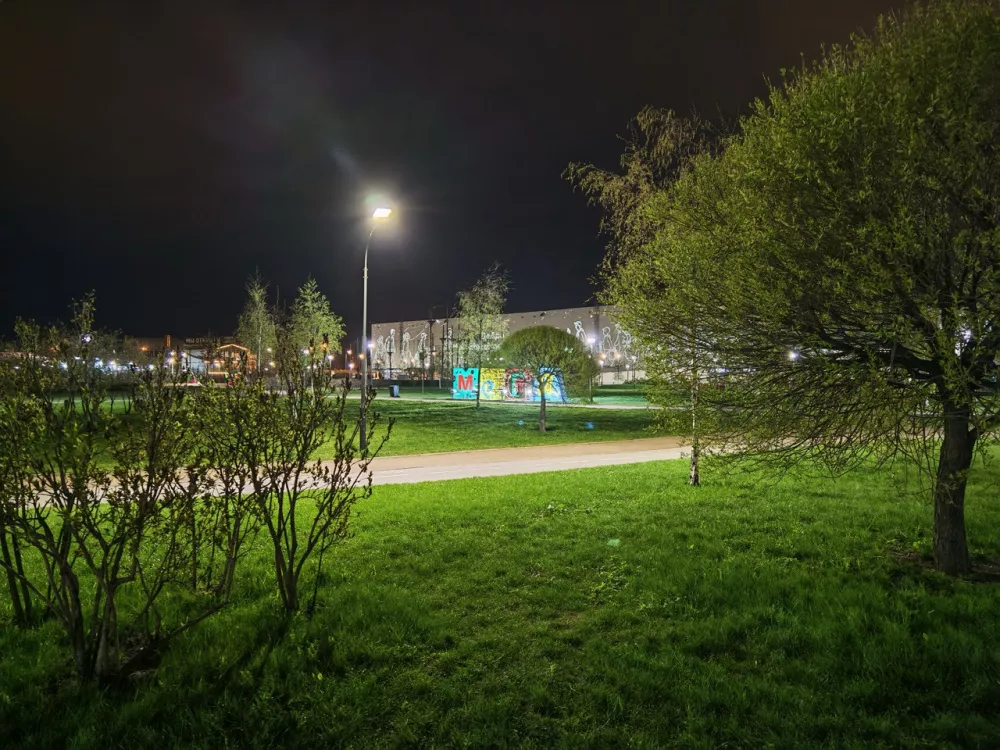 Ночной режим справляется с бликами и шумами, позволяя снимать в условиях минимального света. Ночью лучше всего себя ведет главный датчик. Заметно, что у него чуть больше диафрагма. Телевик в условиях с недостаточным освещением немного теряет детализацию, поскольку его светосила уступает главному датчику и ультраширику. Однако с шумами довольно хорошо справляются алгоритмы постобработки.