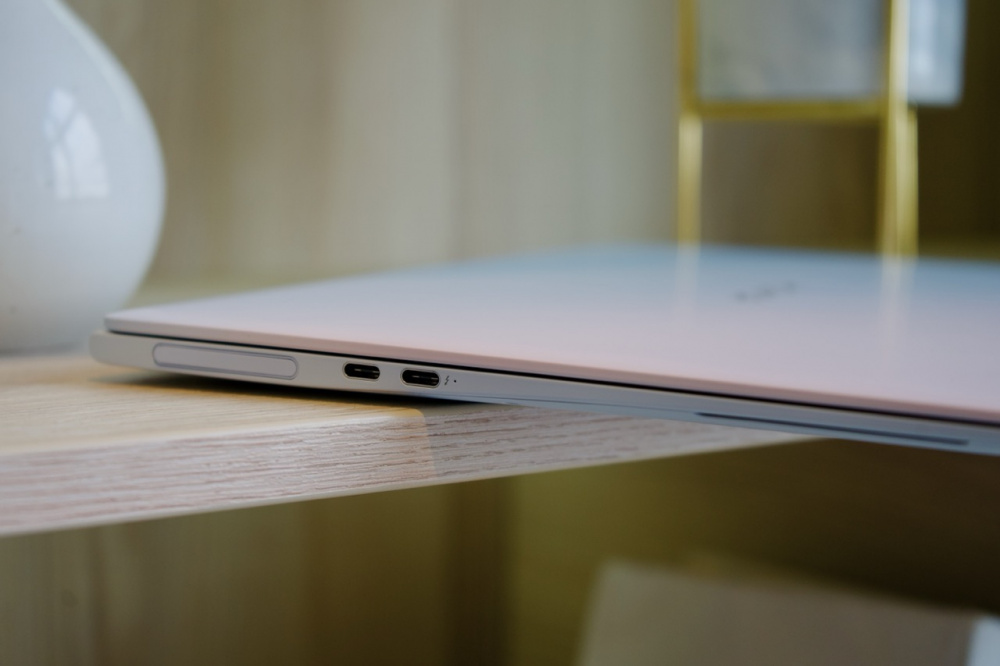 На левой грани расположены: секретный слот (о нем отдельно расскажу чуть ниже) и два порта USB-С. На правой: один USB-A, HDMI и 3,5 мм разъем для подключения проводных гарнитур. В целом я уже привык работать на ультрабуках, поэтому нехватки портов у меня не возникло. Все рабочие процессы оптимизированы под текущий набор, а тут еще и полноценный HDMI есть.