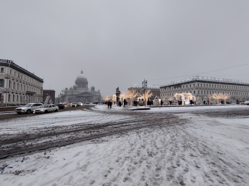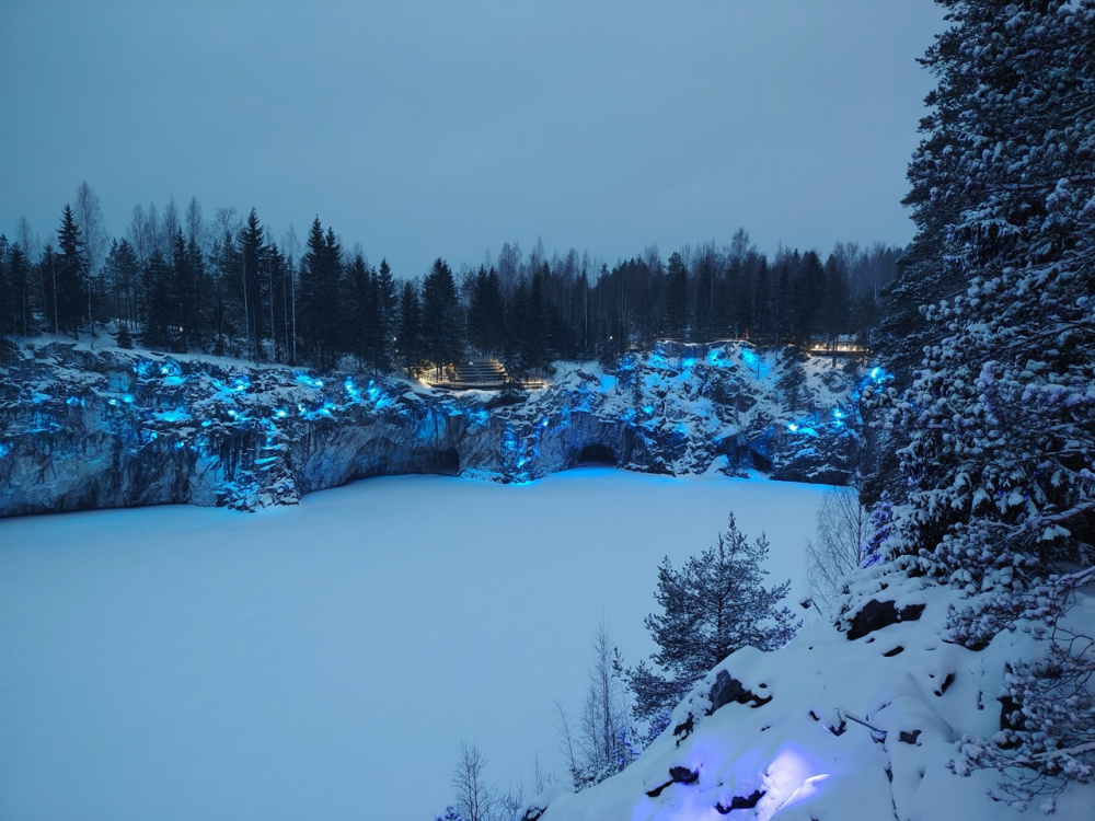 Главный датчик: Ультраширик: Тесты со сложным освещением проведены на следующий день в Рускеале. Результаты вы сможете оценить самостоятельно по кадрам ниже: После поездки я вернулся в Питер, который встретил меня снегом. Это был еще один интересный повод протестировать смартфон в холодную и влажную погоду с большим объемом осадков.
