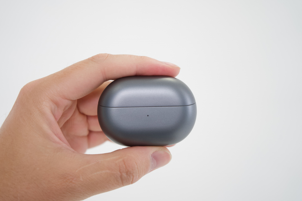 Наш тестовый образец выполнен в расцветке серый металлик — смотрится сдержано, но в то же время эффектно. Поверхность зарядного кейса матовая и поэтому немаркая. Форма — привычная, овальная. HUAWEI FreeBuds Pro 3 практически не ощущаются в кармане.