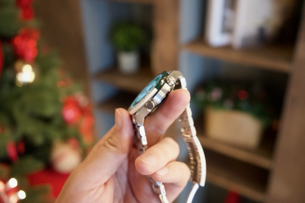 Конструкцию модели в зеленом цвете органично дополняет двухцветный нанокерамический базель. Габариты корпуса составляют 48,5 мм × 48,5 мм × 13 мм, а вес — 76 г (без ремешка). Уровень водонепроницаемости — 10 ATM.
