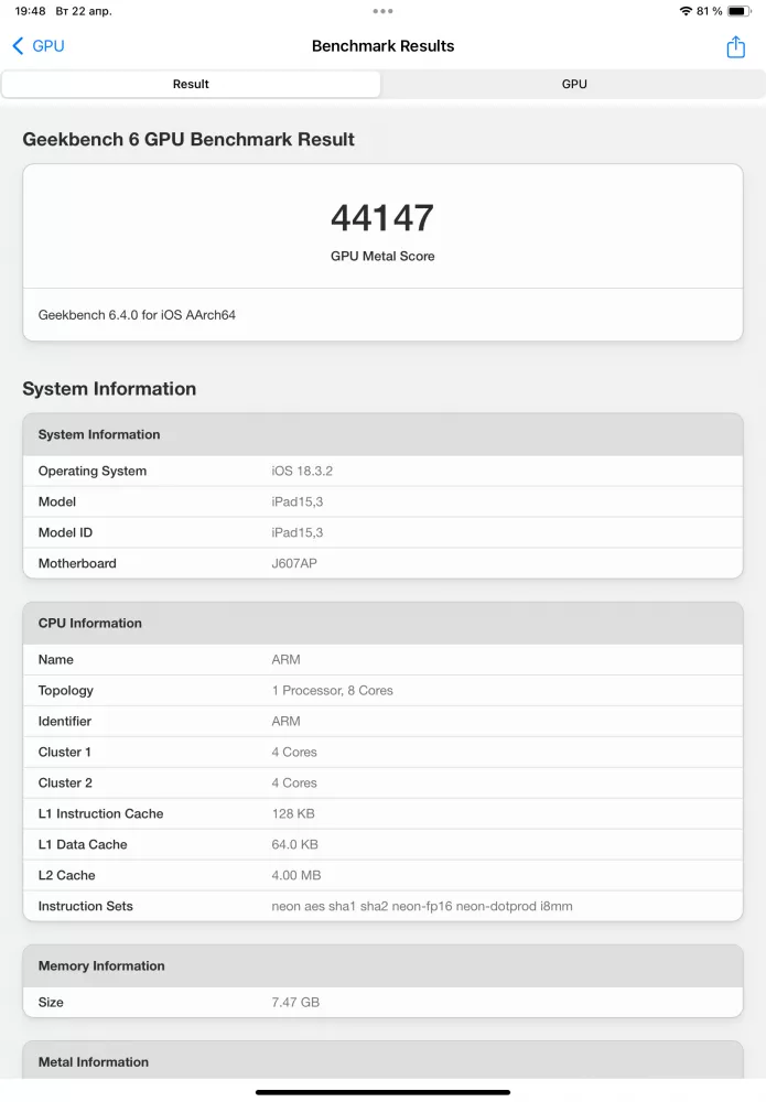В качестве аппаратной платформы базовый iPad 2025 года получил чип A16 (5 ядер CPU, 5 ядер GPU и 16-ядерный Neural Engine). Ниже прикладываю результаты бенчмарков, если в случае с техникой Apple вам зачем-то нужны результаты искусственных тестов. iPad Air получает уже третье поколение полноценных десктопных чипов. «Воздушные» новинки работают на M3 с 8 ядрами CPU, 9 ядрами GPU и 16-ядерным Neural Engine. Ниже вы можете ознакомиться с результатами бенчмарков. Конфигурации памяти:| iPad 2025 | iPad Air на M3 |