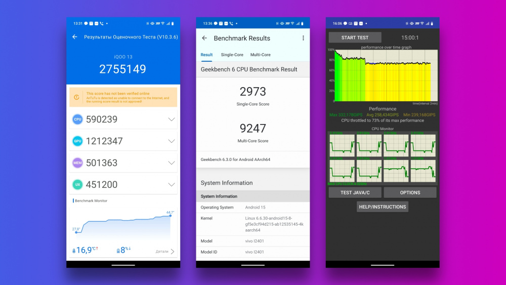 Смартфон прогнали во всех самых актуальных бенчмарках. С результатами тестирования вы сможете ознакомиться на скриншотах ниже: